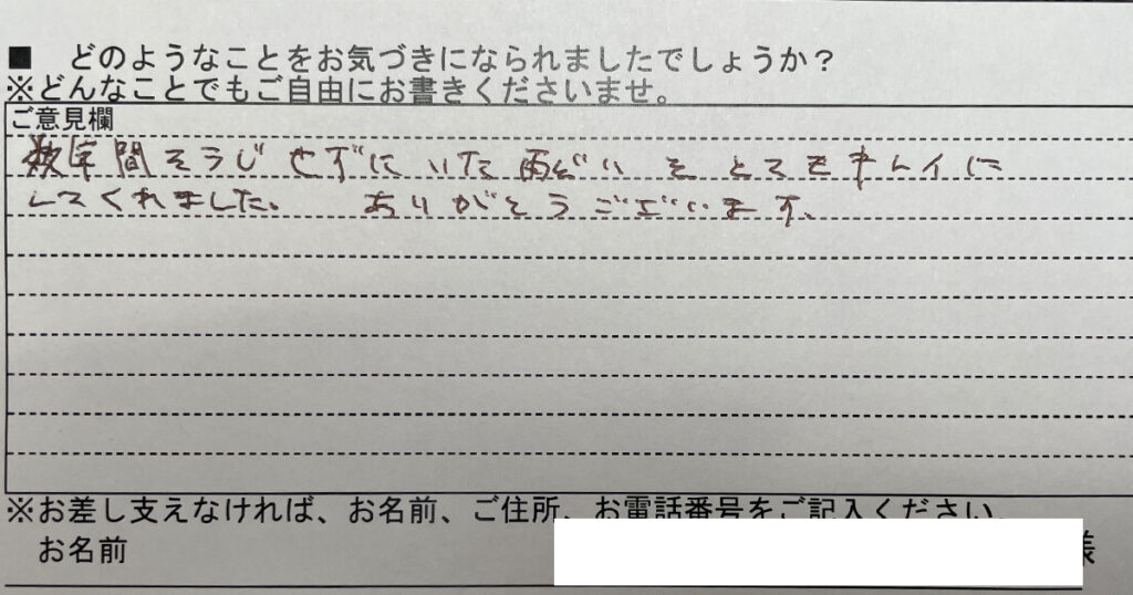 数年間掃除せずにいた雨どいをとてもきれいにしてくれました。ありがとうございます。