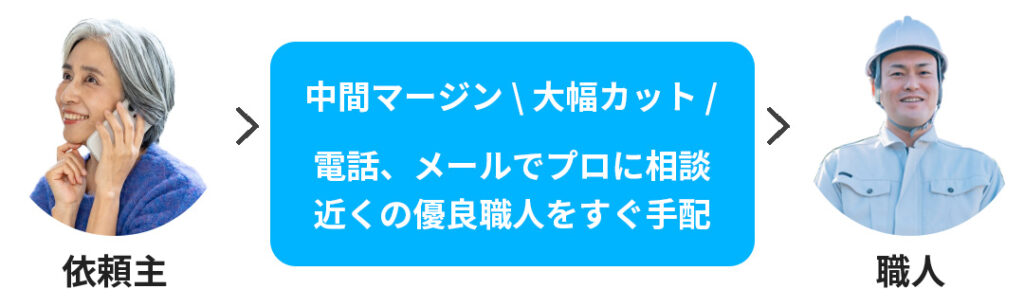 独自のシステム構築により依頼主と職人を直接おつなぎし、どこよりも早く、そして納得のコスパを実現しております。