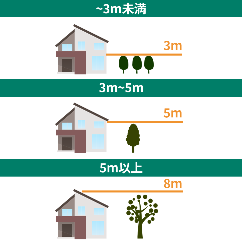 当店が提供している「お家を守る!庭木伐採プラン」はどんな樹種でもどんな大きさでも1本から伐採をする庭木伐採の専門プランです。お家トラブルの原因となる木を伐採することで、事前にトラブルを防ぎます。枝の長さや見た目を整える「剪定(せんてい)」でトラブル対策出来る場合もありますが、「空き家であまり管理できない」「大きくなりすぎている」などの場合は根本から「伐採」するのも一つの解決策です