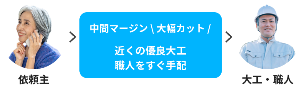 一方、確かな技術を持ち、真っ当な仕事をしている施工業者は、WEB周りの営業力がないために必要としてくださっているお客様との接点を持つことが困難です。 営業力の強い一部企業のみに利益が集中しているのが現状です。