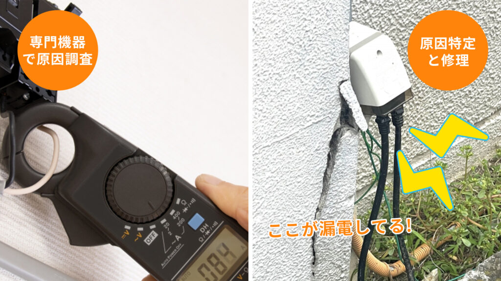 当社の漏電調査は原因を特定しその場で修理まで完結するワンストップサービスです。