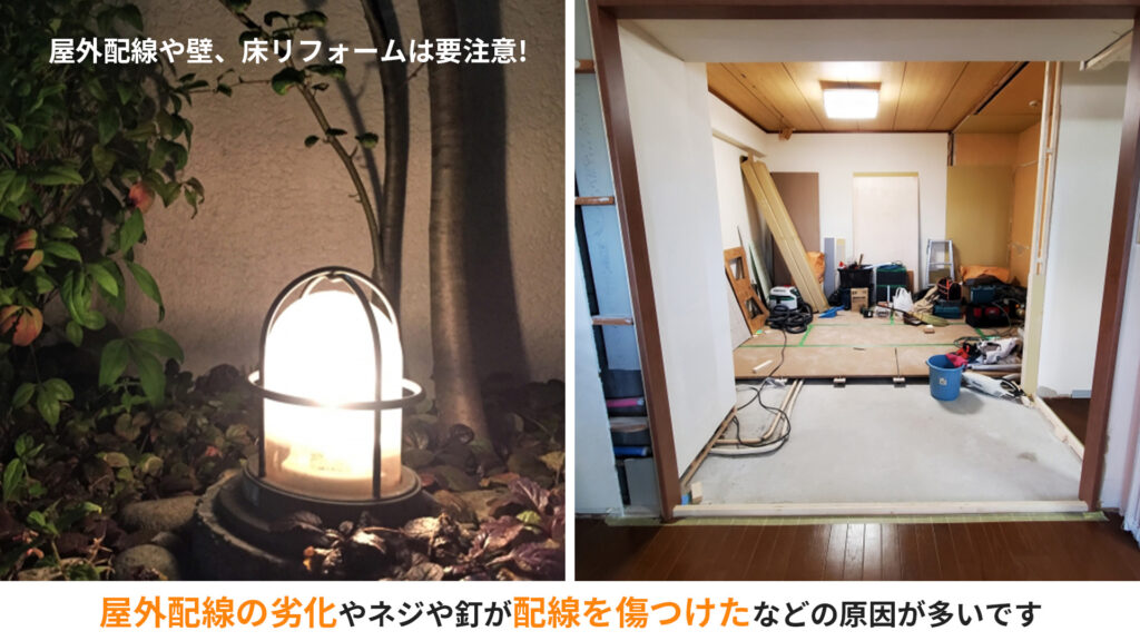 漏電している箇所を特定せず放置していると周囲のホコリや紙類に引火するおそれも
